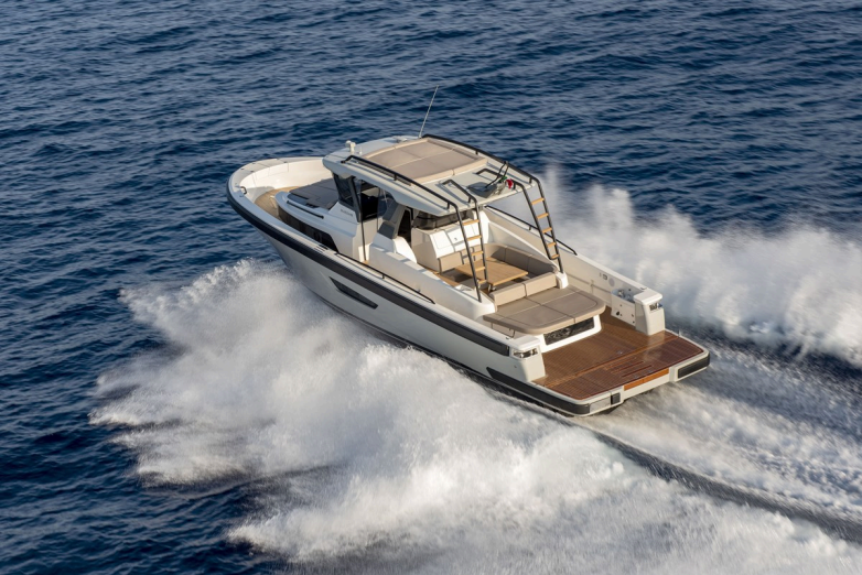 Extras include a 400KG hydraulic platform, Interceptor trim tabs, 9Kw generator, air conditioning, underwater lights, 12″ Garmin plotters, AIS transceiver, autopilot, cockpit sun awning with carbon poles, wet bar in the cockpit, cockpit enclosure, bow thruster and much more!