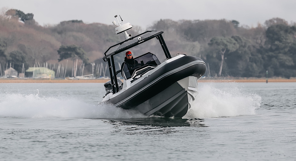 This 10.8m Open Chase Boat is the first of the next-generation design range. D-section RIB powered by twin Suzuki 325hp duo-prop engines achieves an effortless 50 knots, seamlessly blending speed with endurance through advanced composite construction and large aluminium fuel tanks.