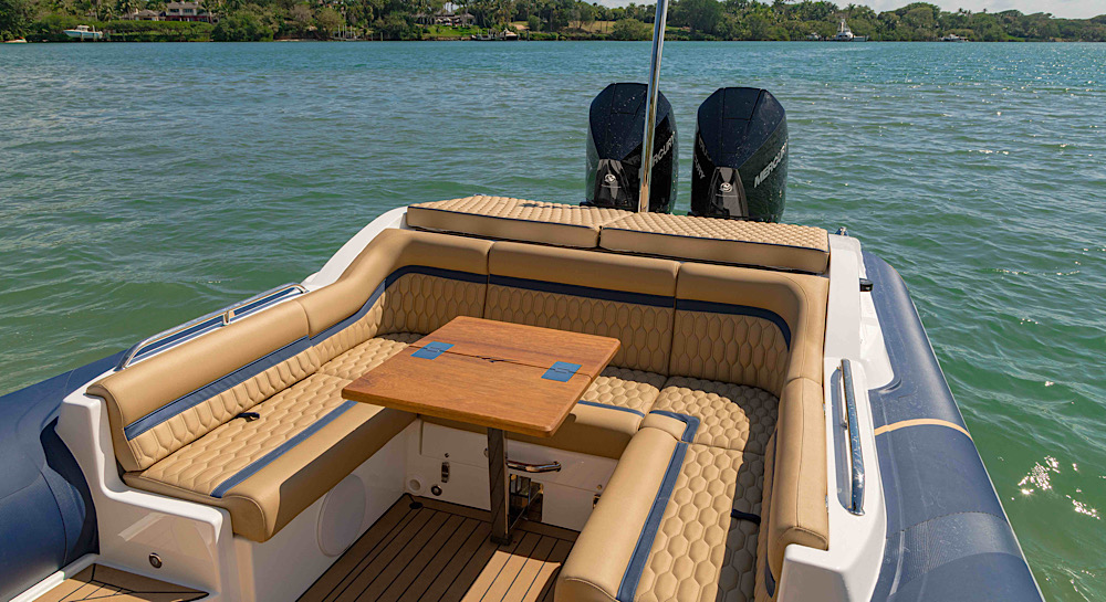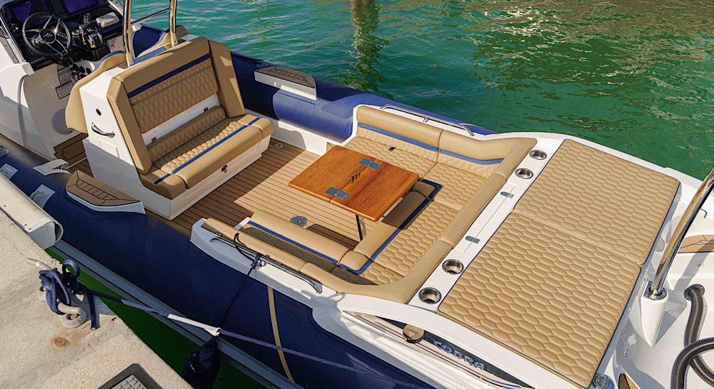 The model is the flagship of the Nautique range incorporating a comprehensive specification into this dedicated yacht tender offering. A luxury, performance rib capable of over 60 knots with the new Mercury twin V10 outboards with joystick control with a practical design layout for carrying 14 passengers in style and comfort …..