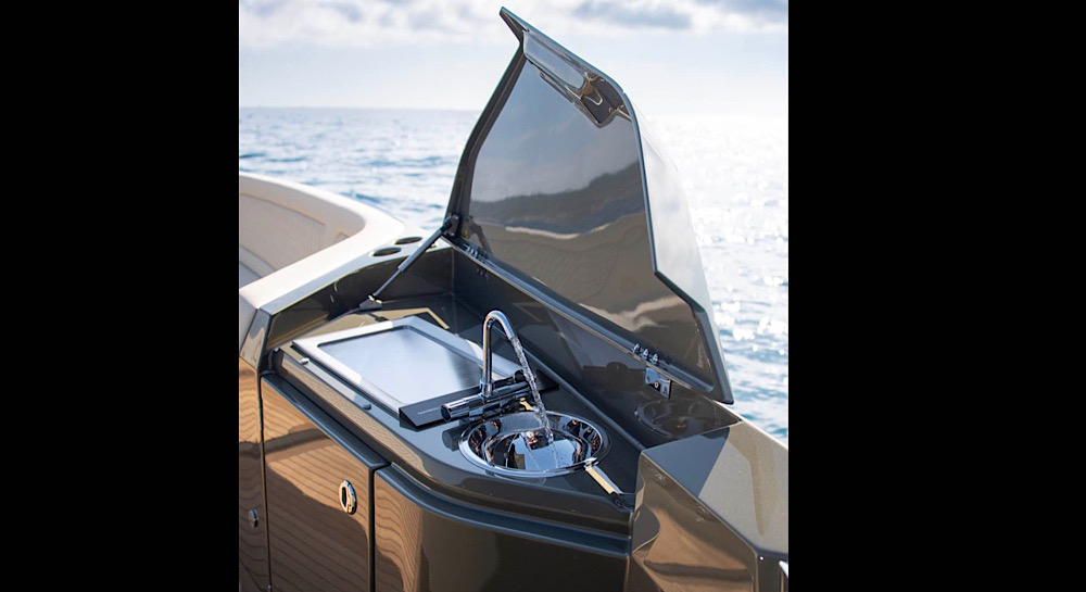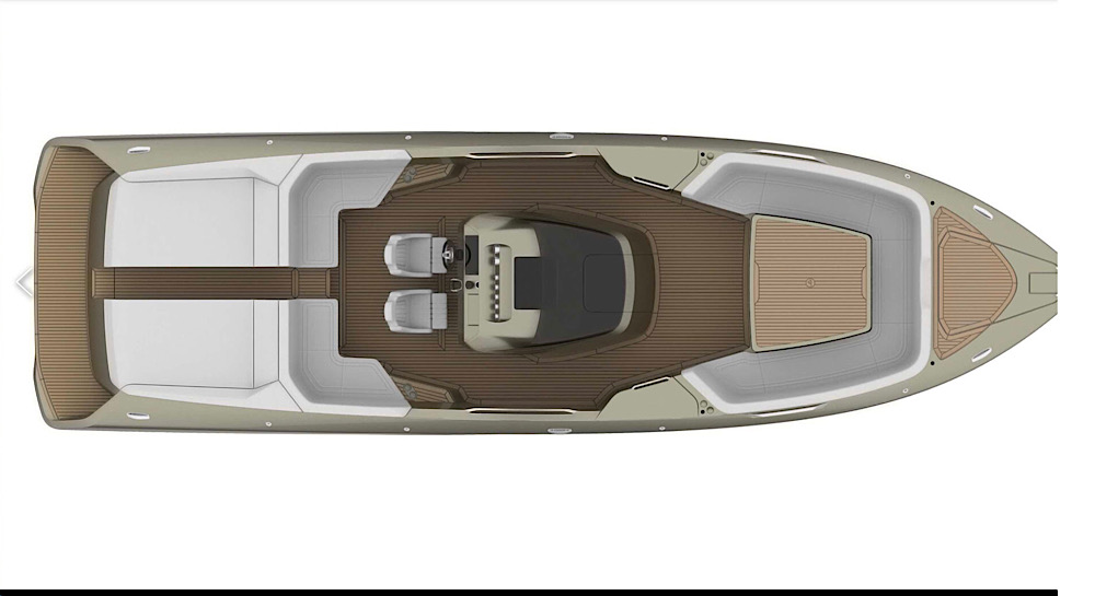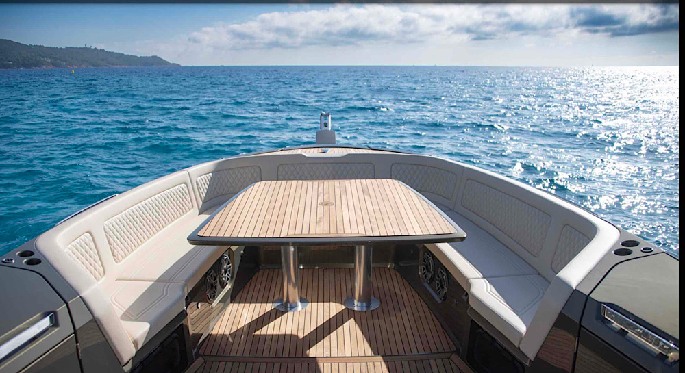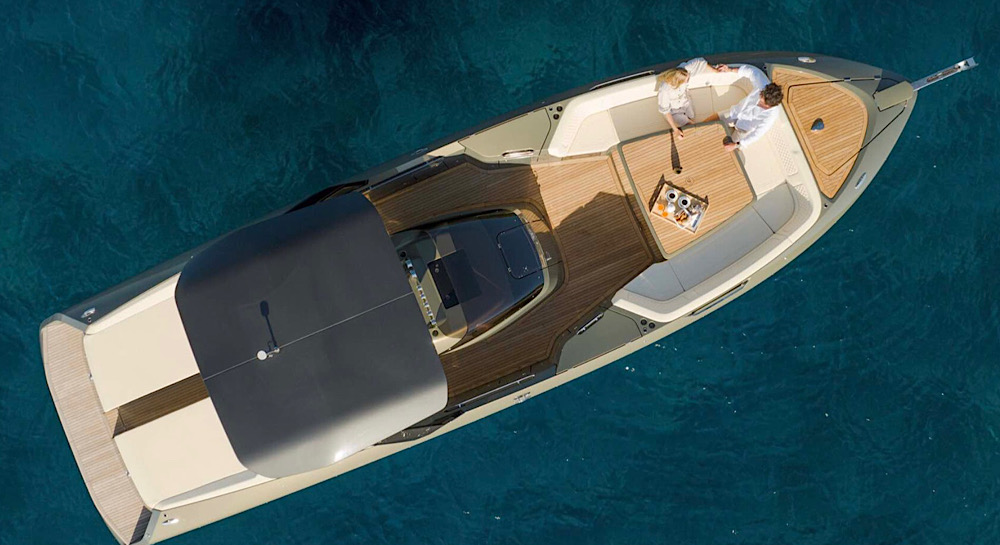 The open-plan cockpit provides comfortable seating and easy access to the water.