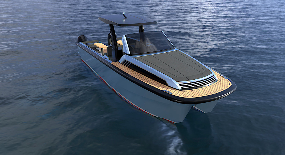 Exciting new build fully custom high speed catamaran tender. Innovative hydrofoil planing catamaran with impressive load carrying capacity and excellent high and load speed stability. Boasting over 40 knots top speed and with close to 40% reduction in fuel consumption over traditional hull designs. Bespoke deck layouts available depending on required use. Incorporating beach landing bow door, foldable T-Top for as well as an overnight cabin layout. Twin inboard or outboard motorisation. Hull sizes from 8.5m – 10.5m. New build slots for 2025 still available.