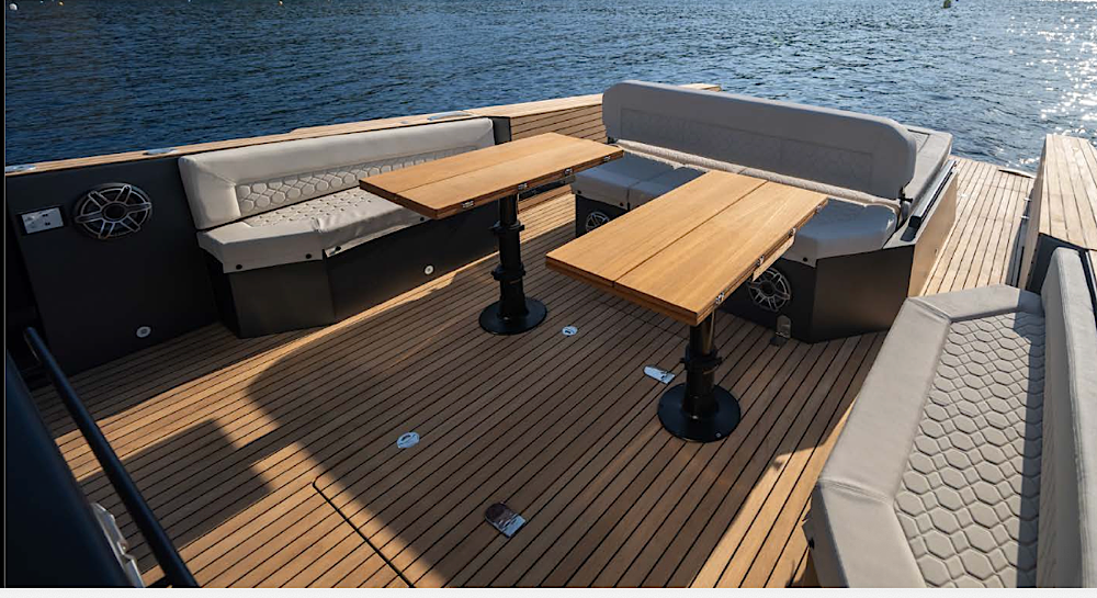 Stylish chase tender with overnight cabin facilities.