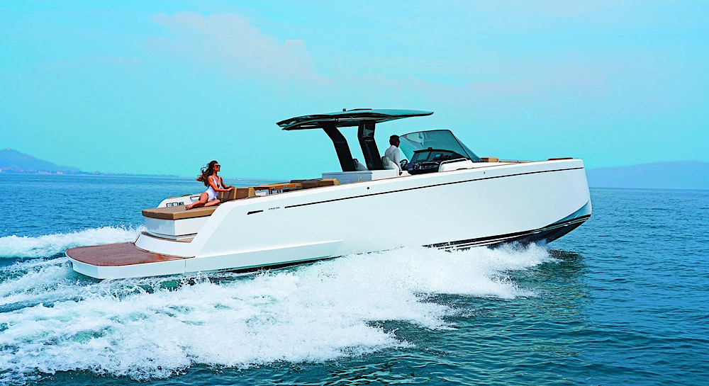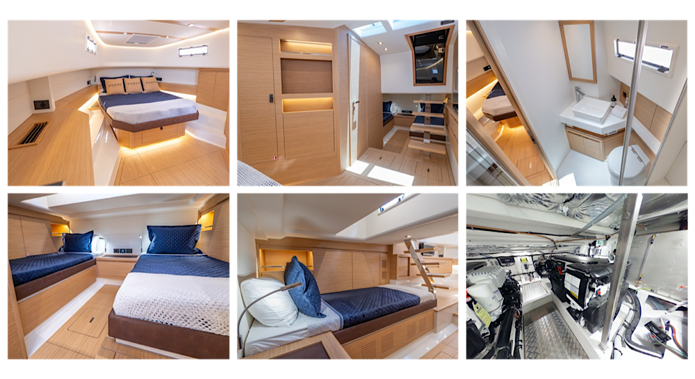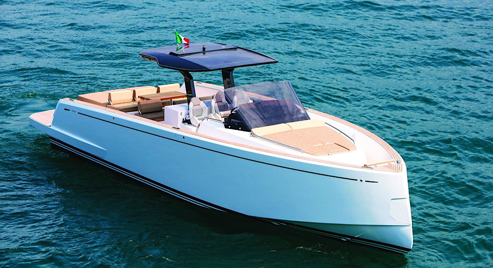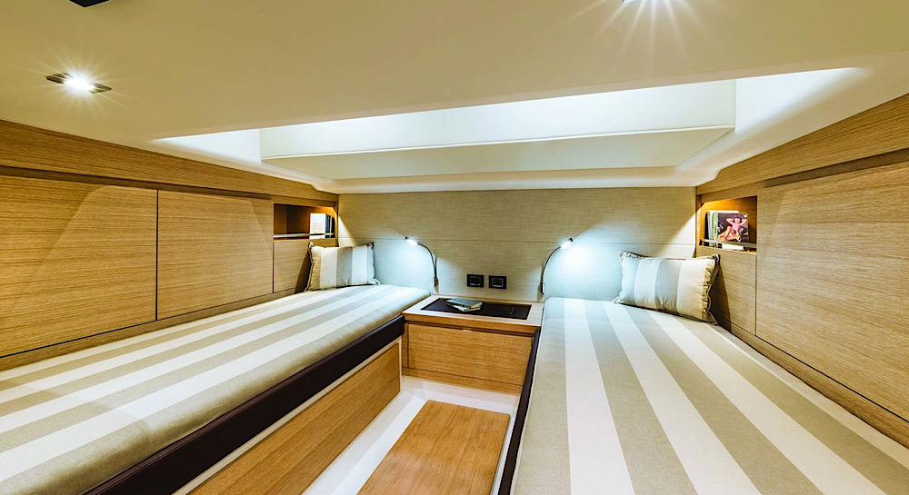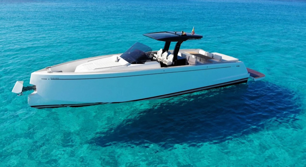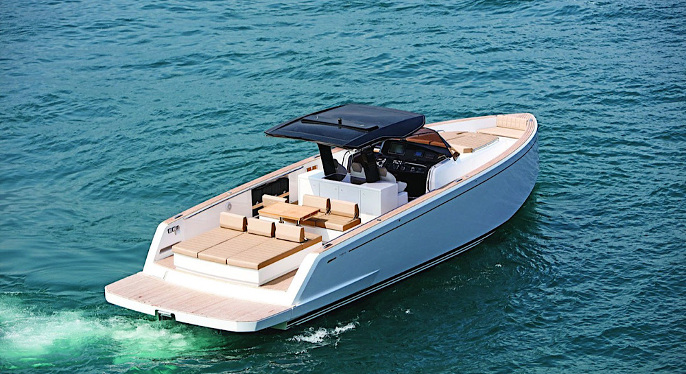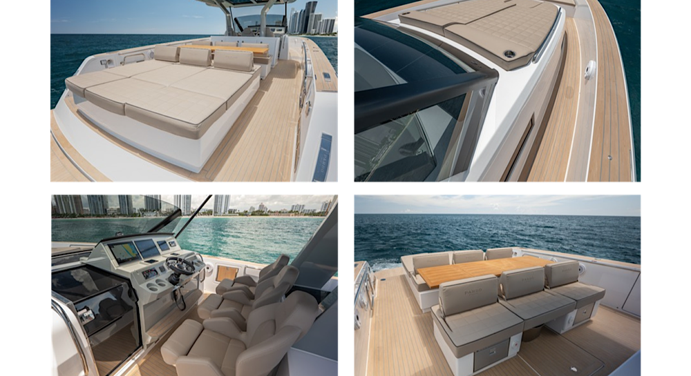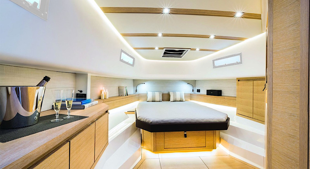 For enhanced comfort, the boat is equipped with a kitchen and storage module. The synthetic teak deck and long hydraulic platform add to the luxurious feel, while the integrated bathing ladder and electric solarium garage provide convenience. It also features high-performance audio equipment, Garmin electronics with multifunction displays, and a VHF DSC radio. Additional practical amenities include a fridge, two fridges under cockpit seats, side storage, LED lighting, and an electric anchoring system with video camera and chain counter.